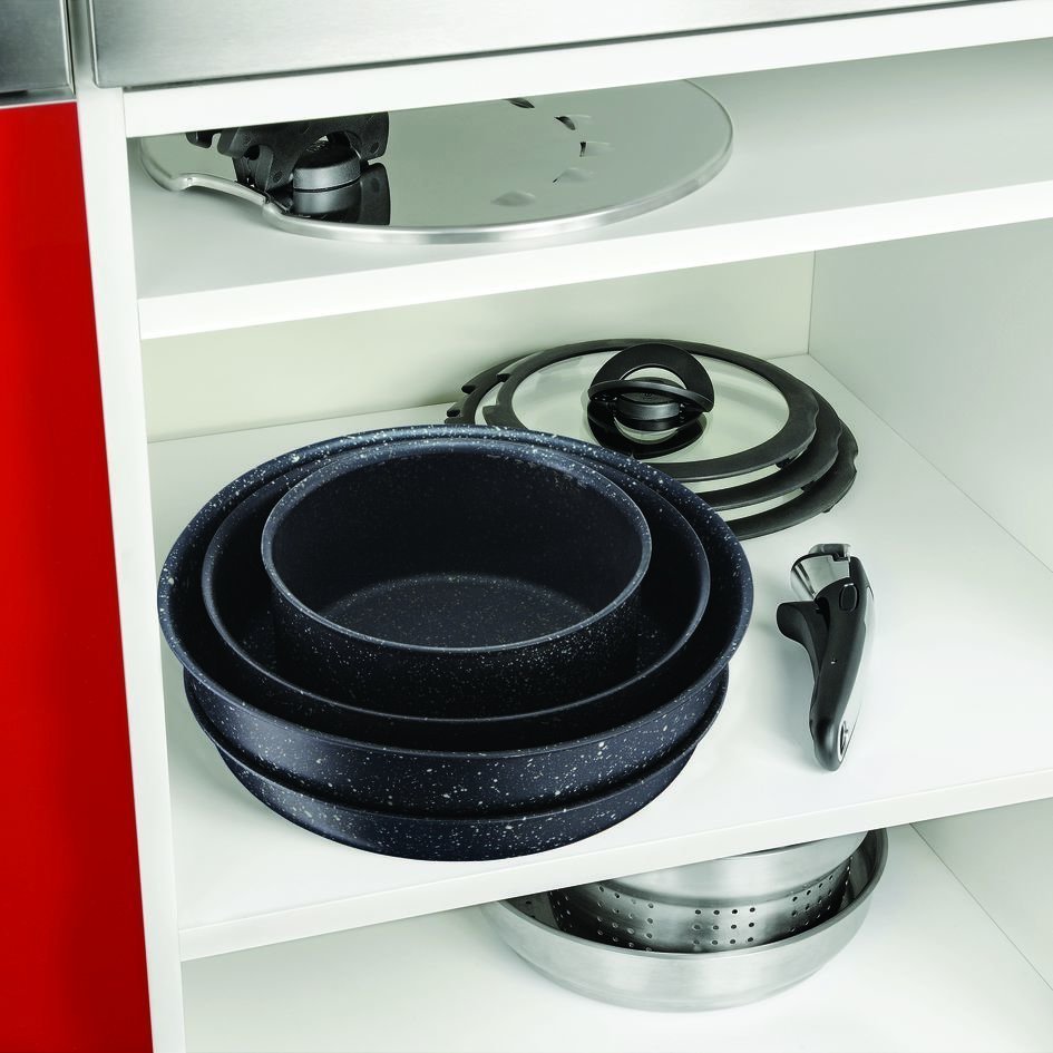 A Tefal Ingenio tapadásmentes serpenyőkben vagy edényekben nemcsak egészséges módon süthet és párolhat ételeket. Csak vegye le a fogantyút, és tegye az előkészített ebédet vagy vacsorát a sütőbe, hogy sütéssel fejezze be annak készítését. Így tetszés szerint váltogatva főzhet a tűzhelyen és sütőben, amivel jelentős időt takaríthat meg.