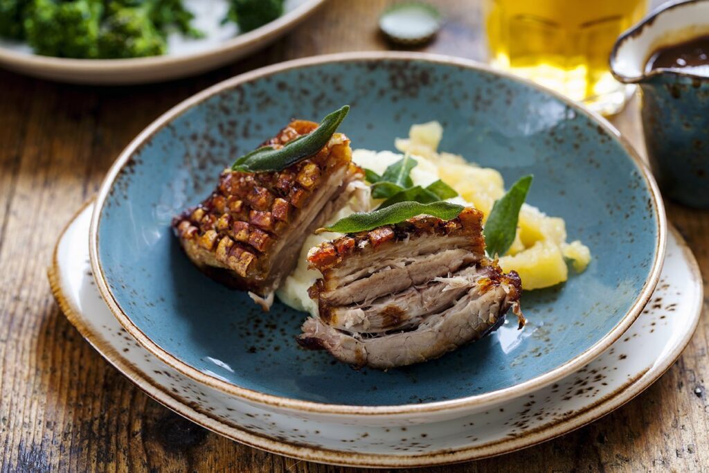 főtt csülköt gyakran spenóttal és burgonyával vagy knédlivel kínálják.