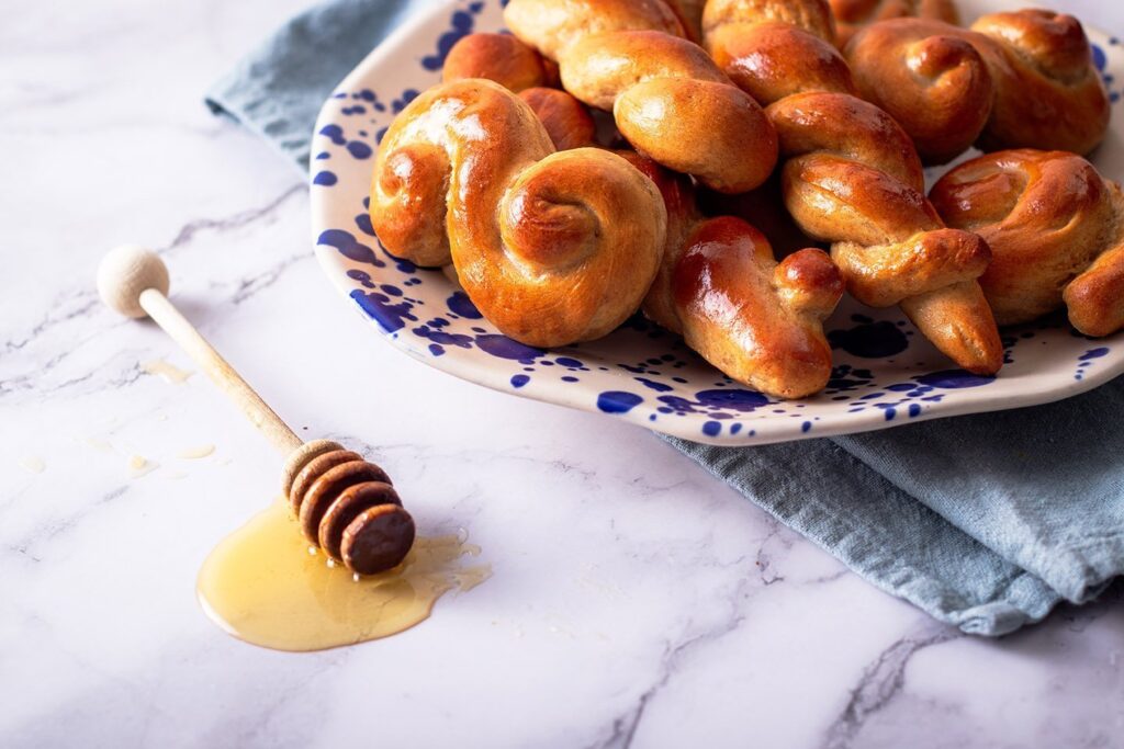 keresztelt napon, vagyis húsvét hétfőt megelőző szerdán? Jiddis süteményt, hagyományos édes élesztős tésztából készülő