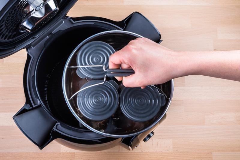 Ossza formákba (egyenként 75 g). Zárja be. Helyezze a kosarat az edénybe. Tegye bele a formákat. Öntsön bele 25 cl vizet.