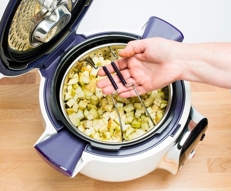 Tegye a padlizsánkockákat a párolókosárba. Az edénybe töltsön 250 ml vizet.