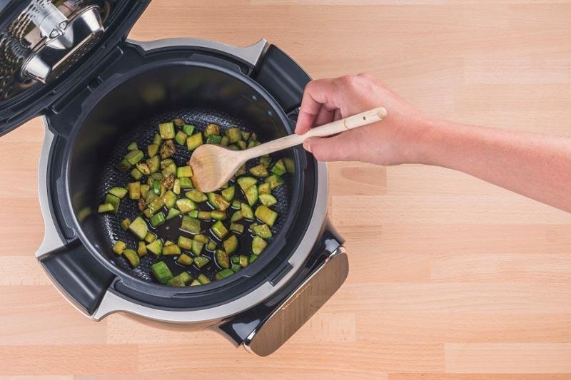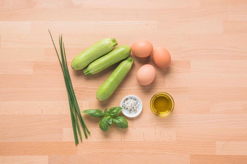 A cukkinit pirítsa 1 evőkanál olívaolajban 5 percig, majd tegye a formába.