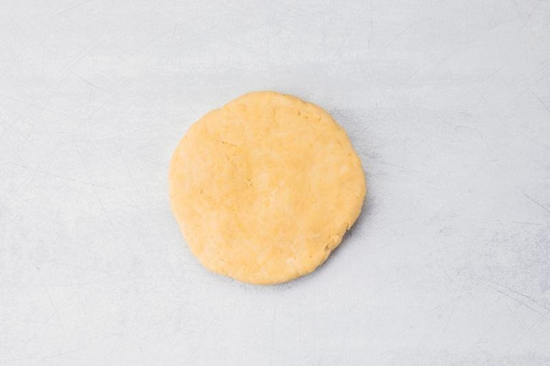 Ellenőrizze az előkészületeket – Az omlós tésztának a következőhöz kell hasonlítania: Ha túl omlós a keverék, adhat hozzá egy kis vizet, hogy golyóvá formálja a tésztát. Az omlós tészta túl ragacsos: „Adjon hozzá még egy kis lisztet.“