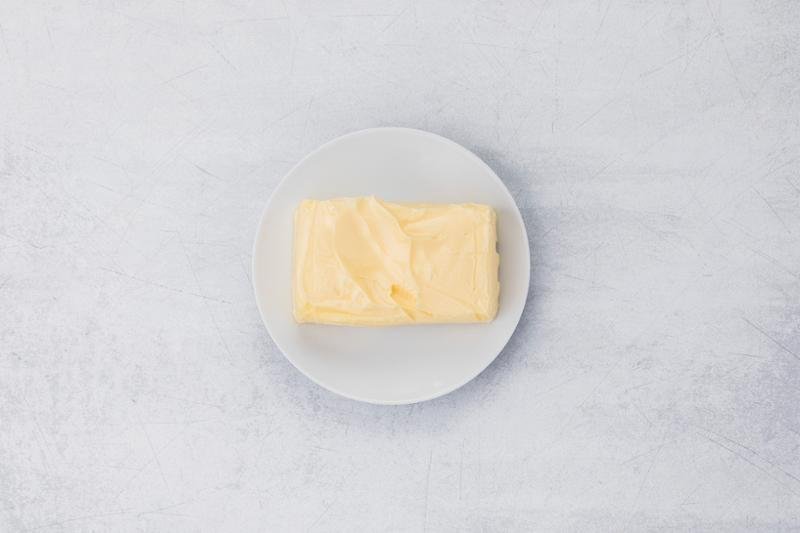 A tészta elkészítése előtt 1 órával vegye ki a vajat a hűtőből, és kockázza fel, vagy tegye 5-10 másodpercre a mikrohullámú sütőbe, hogy kissé megpuhuljon (anélkül, hogy megolvadna).