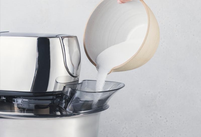 Kaparja le a tál oldalát, majd nyomja meg a „Start” gombot. Adja hozzá lassan a második tejmennyiséget a fedélen lévő nyíláson keresztül.