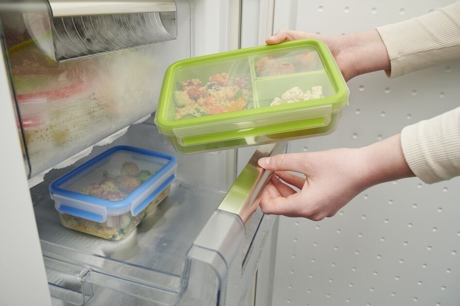 Azután, hogy a hétvégén egyszerre megfőztük a heti menüt, az egyes ételeket dobozoljuk be és tegyük a hűtőbe vagy a fagyasztóba. Viszont van egy másik lehetőség is, mégpedig, hogy szintén vasárnap készítsük elő a heti főzéshez szükséges hozzávalókat az egész hétre, kiporciózva, dobozolva, és azokat tároljuk őket a hűtőben.