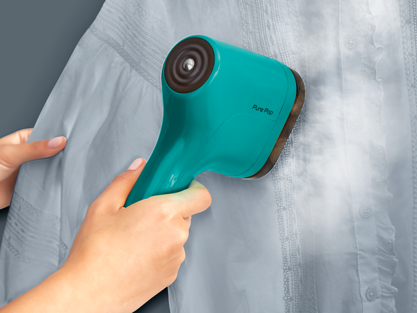 Vasalás nyaralás alatt? ATefal Pure Pop kézi gőzölő a forró gőz segítségével egyetlen mozdulattal vasalja ki a ruhákat – így nyaralás alatt is kifogástalanok lehetnek ruháink.