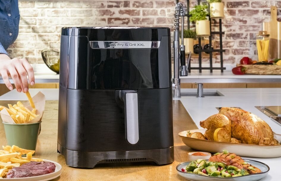 Ha finom húsételeket szeretne előre elkészíteni, a Tefal Easy Fry & Grill XXL sütője nagy segítségére lesz! Ebben a légkeveréses fritőzben és grillsütőben akár 8 személyre elegendő ételt is készíthet egyidejűleg! A Tefal Easy Fry & Grill XXL két zónával is rendelkezik, amelyeken egyszerre két különböző ételt is süthet.