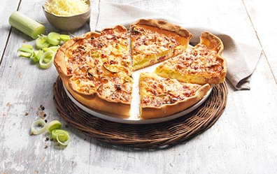 Nakrájejte na kolečka rajče, 3 olivy a dejte je na quiche.